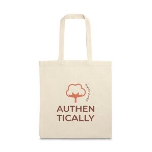 Τσάντα από ανακυκλωμένο βαμβάκι (70%) και πολυεστέρα (30% rPET) (150 g/m²), με χειρολαβές 65 cm. Το ανακυκλωμένο βαμβάκι είναι μονόχρωμο και άβαφο. Η πρώτη ύλη χρησιμοποιείται στην αρχική της μορφή και χρώμα, χωρίς τη χρήση χημικών ουσιών βαφής ή λεύκανσης, συμβάλλοντας έτσι στη μείωση των ρύπων. Το μονόχρωμο χρώμα επιτυγχάνεται με την επιλογή ανακυκλωμένων νημάτων με την ίδια απόχρωση και ενδέχεται να εμφανιστούν προσμίξεις και χρωματικές διαφοροποιήσεις
