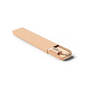 Ευέλικτο σετ γραφής που αποτελείται από 3 στρογγυλά μολύβια σκληρότητας HB, 1 ξύστρα από φυσικό ξύλο, 1 γόμα TPR και 1 χάρακα πεύκου 16,5 cm με κλίμακα εκατοστών (cm). Παραδίδεται σε συσκευασία δώρου από χαρτί kraft. Καθώς το προϊόν είναι κατασκευασμένο από φυσικά υλικά, το χρώμα του προϊόντος καθώς και το αποτέλεσμα της εκτύπωσης ενδέχεται να διαφέρουν από προϊόν σε προϊόν