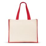 Τσάντα από καμβά (320 g/m²), με χρωματιστό πάτο και πλαϊνά από επενδεδυμένη γιούτα (350 g/m²). Διαθέτει χερούλια μήκους 60 εκ. 420 x 330 x 190 mm
