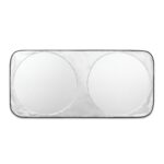 Σκίαστρο αυτοκινήτου από πολυεστέρα 210D με δύο κυκλικές επιφάνειες διαμέτρου 65 cm. Αυτό το καινοτόμο σχήμα είναι ιδανικό για τις πιο ζεστές μέρες. Διατίθεται σε τσάντα από πολυεστέρα 210D, η οποία είναι στρογγυλή για εύκολη αποθήκευση. 1500 x 700 mm
