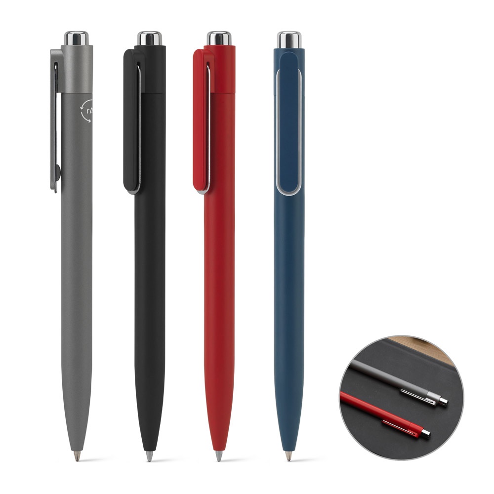 Στυλό από αλουμίνιο (94% ανακυκλωμένο), με καινοτόμο σχήμα κλιπ που ξεχωρίζει για τη μοναδικότητα και την κομψότητά του. Μπλε μελάνι