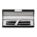 Σετ στυλό με μηχανισμό περιστροφής και μεταλλικό κύλινδρο, και τα δύο με κλιπ. Μπλε μελάνι. Παραδίδεται σε παραγεμισμένο κουτί δώρου