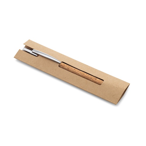 Στυλό από φελλός και ανακυκλωμένο αλουμίνιο (100% rAL) με μεταλλικό κλιπ. Μπλε μελάνι. Καθώς το προϊόν είναι κατασκευασμένο από φυσικά υλικά, το χρώμα του προϊόντος καθώς και το αποτέλεσμα της εκτύπωσης ενδέχεται να διαφέρουν από προϊόν σε προϊόν