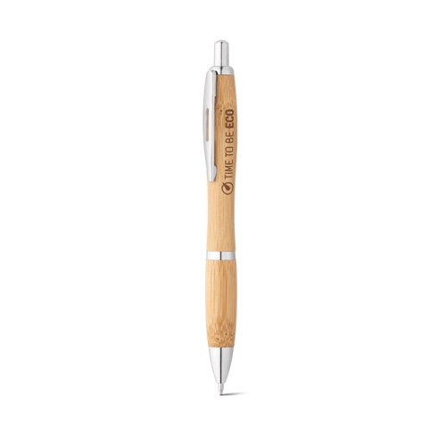 Μπαμπού στυλό με κλιπ και μεταλλικές λεπτομέρειες. Καθώς το προϊόν είναι κατασκευασμένο από φυσικά υλικά, το χρώμα του προϊόντος καθώς και το αποτέλεσμα της εκτύπωσης ενδέχεται να διαφέρουν από προϊόν σε προϊόν