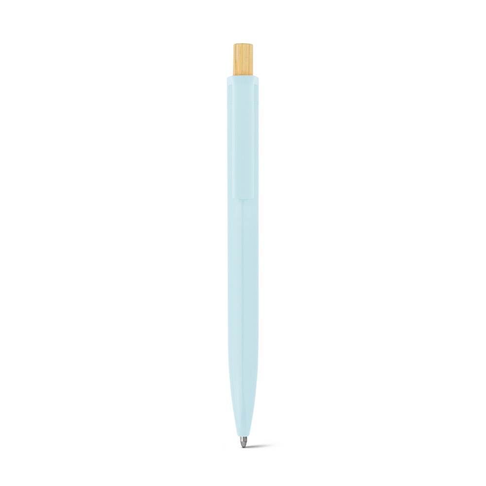 Στυλό με μπίλια από ανακυκλωμένο ABS (100% rABS) με κουμπί από μπαμπού. Μπλε μελάνι. Καθώς το προϊόν είναι κατασκευασμένο από φυσικά υλικά, το χρώμα του προϊόντος καθώς και το αποτέλεσμα της εκτύπωσης ενδέχεται να διαφέρουν από προϊόν σε προϊόν