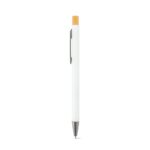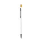 Λευκό στυλό ABS με μεταλλικό κλιπ και χρωματιστό αντιολισθητικό . Διατίθεται σε μεγάλη γκάμα χρωμάτων. Μπλε γραφή