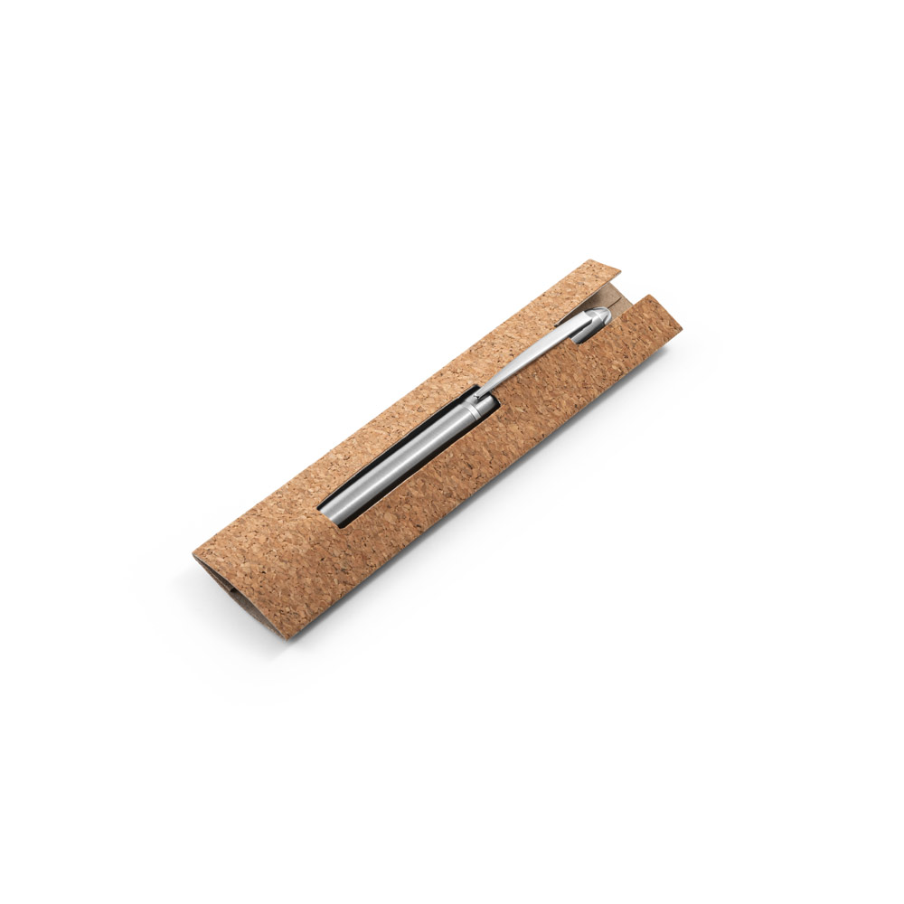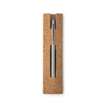 Στυλό ballpoint με σώμα από ανοξείδωτο ατσάλι (53% ανακυκλωμένο) με κλιπ. Το στυλό έχει μαύρη γραφή και μηχανισμό περιστροφής. Παραδίδεται σε τσάντα δώρου από φελλό. Ballpoint στυλό: ø11 x 137 mm | Pouch: 155 x 40 mm