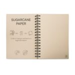 Σημειωματάριο A5 με κρίκους, σκληρό εξώφυλλο, από χαρτί ζαχαροκάλαμου (80% ζαχαροκάλαμου). Περιέχει 160 απλές σελίδες από χαρτί ζαχαροκάλαμου (80% ζαχαροκάλαμου) (90 g/m²) και λάστιχο για το κλείσιμο του τετραδίου. 147 x 214 mm