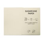 Σημειωματάριο με σκληρό εξώφυλλο A5 από χαρτί ζαχαροκάλαμου (80% ζαχαροκάλαμου). Το εσωτερικό περιέχει 160 σελίδες με γραμμές από χαρτί ζαχαροκάλαμου (80% ζαχαροκάλαμου) (90 g/m²), μια διαχωριστική λωρίδα και μια ελαστική ταινία για να κλείνει το τετράδιο