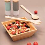 Τετράγωνη σαλατιέρα μπαμπού. Προσθέστε το σετ Salvy με 2 μαχαιροπήρουνα για σαλάτες από μπαμπού για να ολοκληρώσετε αυτό το δώρο. Καθώς το προϊόν είναι κατασκευασμένο από φυσικά υλικά, το χρώμα του προϊόντος καθώς και το αποτέλεσμα της εκτύπωσης ενδέχεται να διαφέρουν από προϊόν σε προϊόν