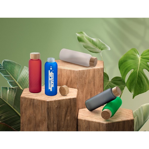 Frosted βοριοπυριτικό γυάλινο μπουκάλι με καπάκι από μπαμπού και χωρητικότητα έως 500 mL. Παρέχεται σε κουτί δώρου από χαρτί κραφτ. Καθώς το προϊόν είναι κατασκευασμένο από φυσικά υλικά, το χρώμα του προϊόντος καθώς και το αποτέλεσμα της εκτύπωσης ενδέχεται να διαφέρουν από προϊόν σε προϊόν