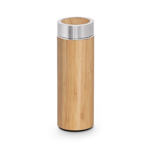 Θερμικό μπουκάλι από μπαμπού και ανοξείδωτο ατσάλι (90% ανακυκλωμένο) με θήκη τσαγιού. Αυτό το μπουκάλι έχει χωρητικότητα έως 430 mL και παρέχεται σε κουτί δώρου. Καθώς το προϊόν είναι κατασκευασμένο από φυσικά υλικά, το χρώμα του προϊόντος καθώς και το αποτέλεσμα της εκτύπωσης ενδέχεται να διαφέρουν από προϊόν σε προϊόν