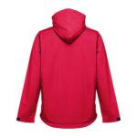 Μπουφάν με επένδυση (unisex) 100% πολυεστέρα (εξωτερικό: 240 g/m² 100% πολυεστέρα pongee 240 και αδιάβροχη επίστρωση PVC. Εσωτερικό 65 g/m² 100% πολυεστέρα ταφτά. Πλήρωση: πολυεστέρας 100% (80 g/m²). Περιλαίμιο με μαύρο πολικό πλέγμα (κλείνει με ιμάντα με γάντζο και βρόχο). Πτυσσόμενο κάλυμμα στο κολάρο, ρυθμιζόμενο μέσω μαύρων πωμάτων. Ανοιγόμενο πτερύγιο, χρωματιστό φερμουάρ, με γάντζο και βρόχο και μαύρο ελατήριο. Περιέχει 2 εξωτερικές τσέπες με πτερύγιο και 2 εσωτερικές τσέπες (1 για κινητό τηλέφωνο) με κλείσιμο με γάντζο και βρόχο. Εσωτερικά μανίκια 2×2 με ραβδώσεις και ρυθμιζόμενες εξωτερικές μανσέτες με ιμάντες με γάντζο και βρόχο. Θερμικά σφραγισμένες ραφές. Φερμουάρ με πρόσβαση στη κάτω πλάτη για εύκολη προσαρμογή