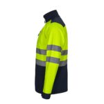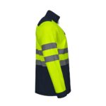 Δίχρωμη ζακέτα από soft shell (280g/m²), από πολυεστέρα (96%) και ελαστάνη (4%). Με επικάλυψη TPU και επένδυση από fleece. Κεντρικό ανάποδο φερμουάρ σε αντίθετο χρώμα, ρυθμιζόμενες μανσέτες με άγκιστρο και θηλιά. Ανακλαστικές λωρίδες στον κορμό και στα μανίκια. Περιέχει πέντε τσέπες: 3 τσέπες με φερμουάρ και 2 εσωτερικές τσέπες. Προϊόν σε συμμόρφωση με τον κανονισμό ΕΕ 2016/425, πιστοποιημένο κατά EN20471 και με αριθμό κατηγορίας 2