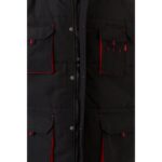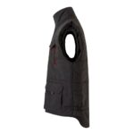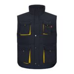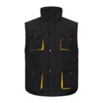 Ανδρικό γιλέκο εργασίας με επένδυση από 100% oxford πολυεστέρα με ακρυλικό επίστρωμα (170 g/m²), επενδεδυμένο με 100% ταφτά πολυεστέρα (65 g/m²). Δερμάτινο κολάρο και ελαστικές πλευρές για καλύτερη εφαρμογή. Περιέχει 6 τσέπες: 5 μπροστινές τσέπες, συμπεριλαμβανομένων 2 με εσωτερικό φερμουάρ συν 1 για κινητό τηλέφωνο και 1 εσωτερική τσέπη. Φερμουάρ πρόσβαση στο πίσω μέρος για εύκολη προσαρμογή