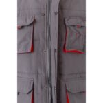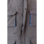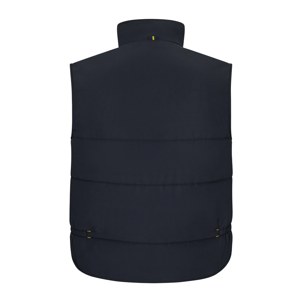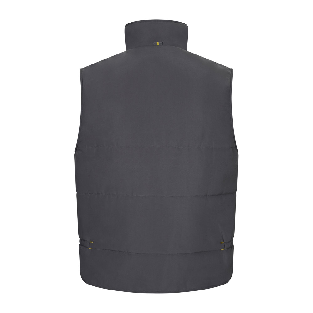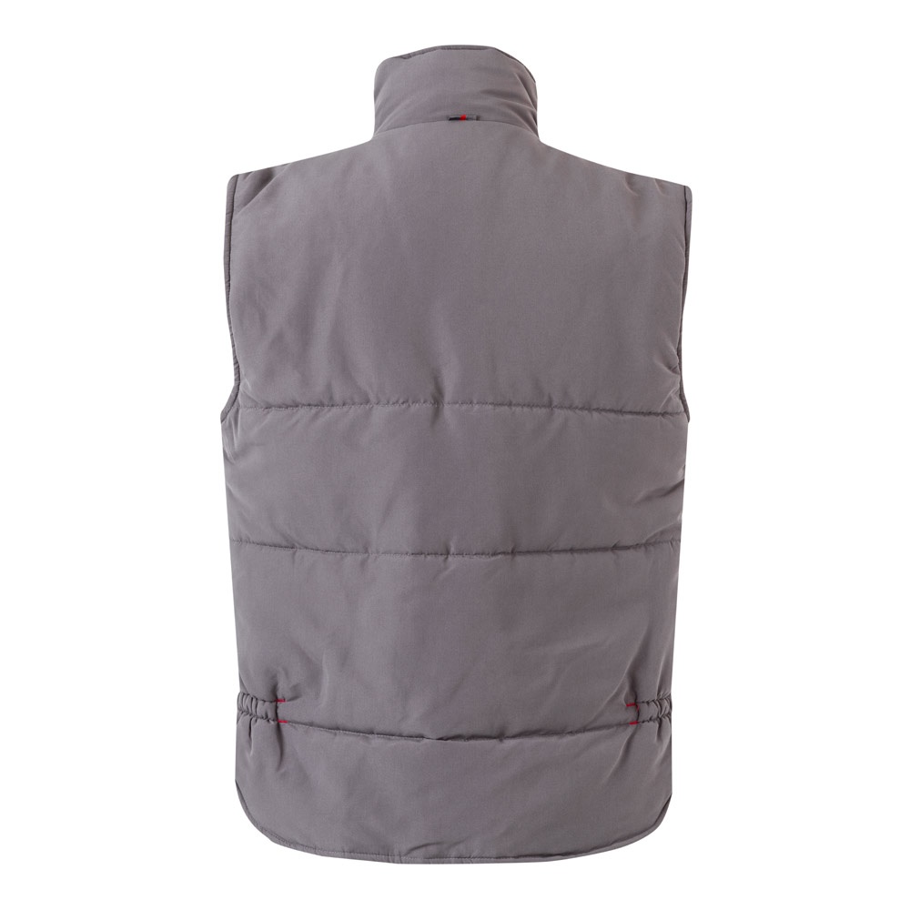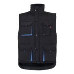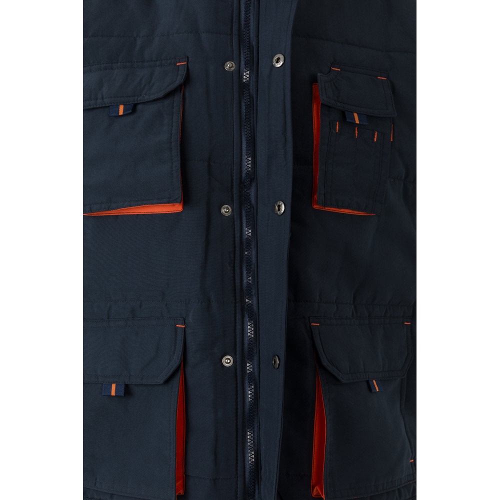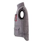 Δίχρωμο, καπιτονέ γιλέκο με πολλές τσέπες (120g/m²), από πολυεστέρα (100%). Κλείσιμο με φερμουάρ, κρυφό με κουμπιά. Ελαστική πλαϊνή ζώνη στη μέση- αντιανεμικό στο μπράτσο. Με μπατζάκια, κορδόνια και ραφές σε αντίθετο χρώμα. Περιέχει επτά τσέπες (2 τσέπες με φυσούνα στο στήθος, 2 κάτω τσέπες, 2 πλαϊνές τσέπες, 1 τσέπη στο στήθος και 1 εσωτερική τσέπη). Μέγεθος: S, M, L, XL, 2XL, 3XL