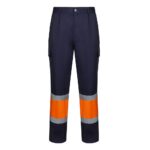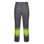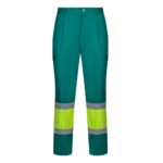 Παντελόνι από δίχρωμο twill (190g/m²), από βαμβάκι (20%) και πολυεστέρα (80%). Ελαστική ζώνη στη μέση, με αντανακλαστικές λωρίδες στο κάτω μέρος του παντελονιού και πέντε τσέπες (2 γαλλικές τσέπες, 2 πλαϊνές τσέπες και 1 πίσω τσέπη). Προϊόν σε συμμόρφωση με τον κανονισμό ΕΕ 2016/425, πιστοποιημένο κατά EN20471 και με αριθμό κατηγορίας 1