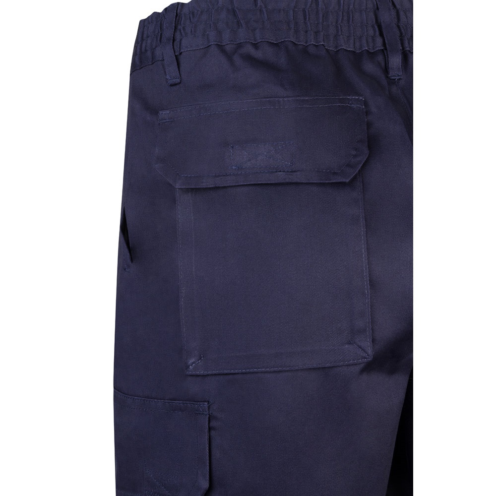 Βερμούδα από twill με πολλές τσέπες (200g/m²), βαμβάκι (35%) και πολυεστέρα (65%). Με ελαστική ζώνη στη μέση και έξι τσέπες (2 γαλλικές τσέπες, 2 πλαϊνές τσέπες και 2 πίσω τσέπες). Size: 36, 38, 40, 42, 44, 46, 48, 50, 52, 54, 56, 58, 60