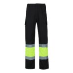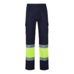 Διχρωμία παντελονιού από twill με πολλές τσέπες (210g/m²), από βαμβάκι (20%) και πολυεστέρα (80%). Με ελαστική ζώνη στη μέση και αντανακλαστικές ρίγες στο κάτω μέρος του παντελονιού. Περιέχει έξι τσέπες (2 γαλλικές τσέπες, 2 πλαϊνές τσέπες και 2 τσέπες πίσω). Προϊόν σε συμμόρφωση με τον κανονισμό ΕΕ 2016/425, πιστοποιημένο κατά EN20471 και με αριθμό κατηγορίας 1. Μέγεθος: S,M,L,XL,2XL,3XL