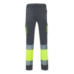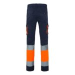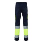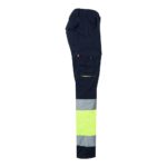 Δίχρωμο ελαστικό παντελόνι με πολλές τσέπες (240g/m²), από βαμβάκι (46%), EME (38%) και πολυεστέρα (16%). Με ελαστική ζώνη στη μέση και αντανακλαστικές λωρίδες στο κάτω μέρος του παντελονιού. Αντίθετο χρώμα στα μπατζάκια, τα pullers και το ύφασμα μεταξύ των αντανακλαστικών λωρίδων. Έξι τσέπες (2 γαλλικές τσέπες, 2 πλαϊνές τσέπες και 2 πίσω τσέπες). Προϊόν σε συμμόρφωση με τον κανονισμό ΕΕ 2016/425, πιστοποιημένο κατά EN20471 και με αριθμό κατηγορίας 1