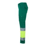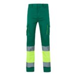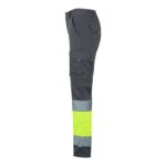 Δίχρωμο ελαστικό παντελόνι με πολλές τσέπες (240g/m²), από βαμβάκι (46%), EME (38%) και πολυεστέρα (16%). Με ελαστική ζώνη στη μέση και αντανακλαστικές λωρίδες στο κάτω μέρος του παντελονιού. Αντίθετο χρώμα στα μπατζάκια, τα pullers και το ύφασμα μεταξύ των αντανακλαστικών λωρίδων. Έξι τσέπες (2 γαλλικές τσέπες, 2 πλαϊνές τσέπες και 2 πίσω τσέπες). Προϊόν σε συμμόρφωση με τον κανονισμό ΕΕ 2016/425, πιστοποιημένο κατά EN20471 και με αριθμό κατηγορίας 1. Μέγεθος: S, M, L, XL, 2XL, 3XL