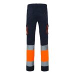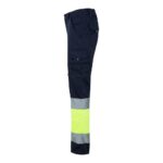 Δίχρωμο ελαστικό παντελόνι με πολλές τσέπες (240g/m²), από βαμβάκι (46%), EME (38%) και πολυεστέρα (16%). Με ελαστική ζώνη στη μέση και αντανακλαστικές λωρίδες στο κάτω μέρος του παντελονιού. Αντίθετο χρώμα στα μπατζάκια, τα εξολκέα και το ύφασμα μεταξύ των αντανακλαστικών λωρίδων. Έξι τσέπες (2 γαλλικές τσέπες, 2 πλαϊνές τσέπες και 2 πίσω τσέπες). Προϊόν σε συμμόρφωση με τον κανονισμό ΕΕ 2016/425, πιστοποιημένο κατά EN20471 και με αριθμό κατηγορίας 1