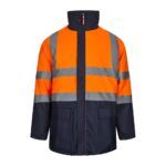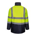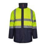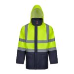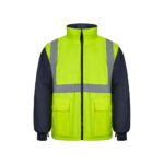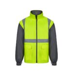 Δίχρωμο παρκά 4 σε 1 (180 g/m²), από πολυεστέρα (100%) με επίστρωση PU. Τέσσερα κομμάτια σε ένα: παρκά, αδιάβροχο, σακάκι και γιλέκο.Πάρκα/αδιάβροχο: με κρυφό κεντρικό φερμουάρ με πατιλέτα, που κλείνει με γάντζο και θηλιά, ανακλαστικές ρίγες στον κορμό, στους ώμους και στα μανίκια και κρυφή κουκούλα. με δύο κάτω τσέπες. Μπουφάν/γιλέκο: με κεντρικό φερμουάρ, ανακλαστικές ρίγες στον κορμό και τους ώμους, ριμπ μανσέτες και αποσπώμενα μανίκια. Με τρεις τσέπες (2 κάτω τσέπες και 1 εσωτερική τσέπη). Προϊόν σε συμμόρφωση με τον Κανονισμό ΕΕ. 2016/425, πιστοποιημένο με EN20471 και κλάση Nº 2. Μέγεθος: 4XL,5XL