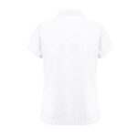 100% βαμβακερό πικέ γυναικείο πόλο (195 g/m²) (χρώμα 183: 85% βαμβάκι/15% βισκόζη). Περιλαμβάνει κολάρο και μανίκια, το κολάρο έχει ταινία ενίσχυσης. Στο μπροστινό μέρος, δίπλα από το κολάρο, υπάρχει ενισχυμένη παλέτα με 4 χρωματιστά κουμπιά (επιπλέον κουμπί στην εσωτερική ραφή). Κομμάτι κομμένο και ραμμένο