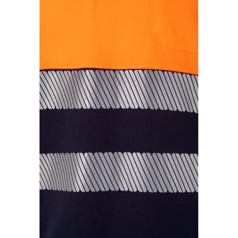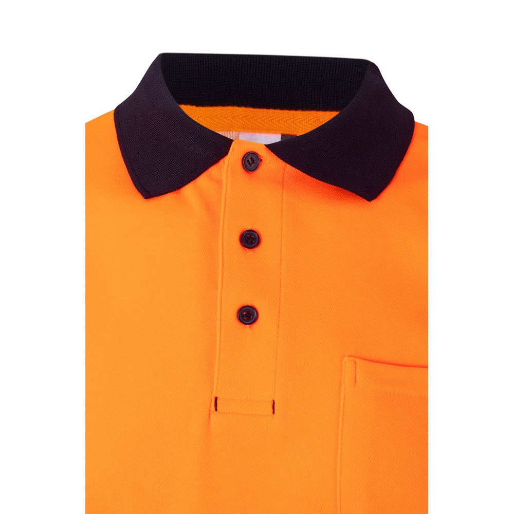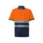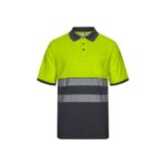 Δίχρωμο πουκάμισο πόλο πικέ (150g/m²) με κοντά μανίκια, από βαμβάκι (55%) και πολυεστέρα (45%). Κουμπιά, γιακάς με ραβδώσεις και κάτω μέρος σε χρώμα αντίθεσης. Τμηματικές αντανακλαστικές λωρίδες στον κορμό. Περιλαμβάνει τσέπη στο στήθος. Προϊόν σε συμμόρφωση με τον κανονισμό ΕΕ 2016/425, πιστοποιημένο κατά EN20471 και με αριθμό κατηγορίας 1