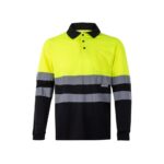 Δίχρωμο πουκάμισο πόλο Bird-eye (160g/m²) με μακριά μανίκια, από πολυεστέρα (100%). Κουμπιά σε αντίθετο χρώμα, γιακάς και μανσέτες με ραβδώσεις επίσης σε αντίθετο χρώμα. Ανακλαστικές λωρίδες στον κορμό και στα μανίκια. Προϊόν σε συμμόρφωση με τον κανονισμό ΕΕ 2016/425, πιστοποιημένο κατά EN20471 και με αριθμό κατηγορίας 1