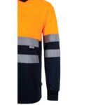 Δίχρωμο πουκάμισο πόλο Bird-eye (160g/m²) με μακριά μανίκια, από πολυεστέρα (100%). Κουμπιά σε αντίθετο χρώμα, γιακάς και μανσέτες με ραβδώσεις επίσης σε αντίθετο χρώμα. Ανακλαστικές λωρίδες στον κορμό και στα μανίκια. Προϊόν σε συμμόρφωση με τον κανονισμό ΕΕ 2016/425, πιστοποιημένο κατά EN20471 και με αριθμό κατηγορίας 1. Μέγεθος: 4XL, 5XL