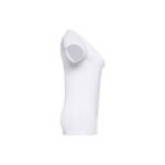 Γυναικείο εφαρμοστό μπλουζάκι από 100% βαμβακερό τζέρσεϋ πλεκτό (150 g/m²) με λαναρισμένο βαμβακερό νήμα. Περιέχει ένα λεπτό διπλό κολάρο στη φανέλα που ενισχύεται από μια σατέν ταινία. Κομμένο και ραμμένο ένδυμα με διπλό ραμμένο στρίφωμα στα μανίκια και στο κάτω μέρος