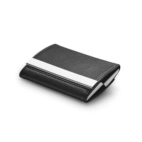 Διπλή θήκη επαγγελματικών καρτών από μέταλλο και PU. Διατίθεται σε κουτί