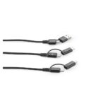 Εξαιρετικά γρήγορο καλώδιο 6 σε 1 για φόρτιση έως και δύο συσκευών ταυτόχρονα. Ένα ευέλικτο και πρακτικό καλώδιο με τις κύριες εισόδους και εξόδους που χρειάζεστε καθημερινά.Υλικό: ανακυκλωμένο αλουμίνιο (20% rAL) και ανακυκλωμένο PET (4% rPET))Χαρακτηριστικά: υπερταχεία φόρτιση και μεταφορά δεδομένωνΕίσοδοι: USB-C και USB-AΈξοδος 1: USB-C (60W) και lightning (27W)Έξοδος 2: USB-C (10W), lightning ή micro-USB (10W)Παράδοση: κουτί δώρου από ανακυκλωμένο χαρτί κραφτ 1000 x 25 mm | Θήκη: 155 x 40 x 30 mm