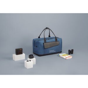 Πρακτική και κομψή ταξιδιωτική τσάντα από κατιόν 600D και υψηλής ποιότητας πολυ-φλις. Το ευρύχωρο κύριο διαμέρισμα είναι ιδανικό για την αποθήκευση ρούχων και άλλων απαραίτητων αντικειμένων για σύντομα ταξίδια. Διαθέτει επίσης τέσσερις εσωτερικές τσέπες και μια μπροστινή τσέπη με ασύμμετρο καπάκι. Διαθέτει χώρο για ετικέτα ονόματος, μεταλλικά πόδια για την προστασία της τσάντας όταν την αφήνετε κάτω, σχέδιο φερμουάρ που μπορεί να ελεγχθεί με λουκέτο (δεν περιλαμβάνεται) και χειρολαβές που έχουν σχεδιαστεί για να είναι ρυθμιζόμενες και άνετες. Χωρητικότητα έως 32 λίτρα. Παραδίδεται σε μη υφασμένη σακούλα. Το προϊόν περιλαμβάνει έκθεση δοκιμής ποιότητας.